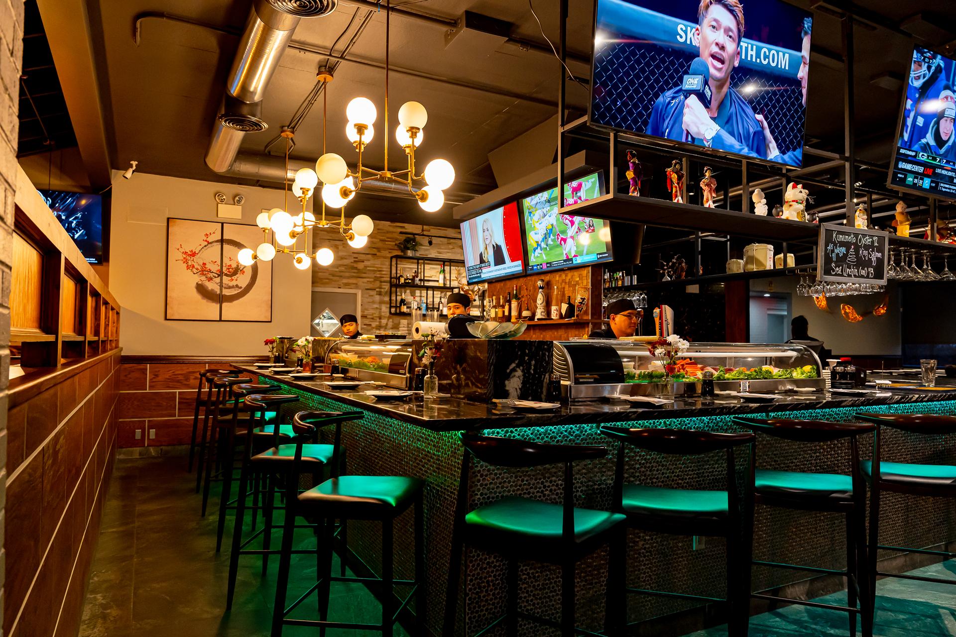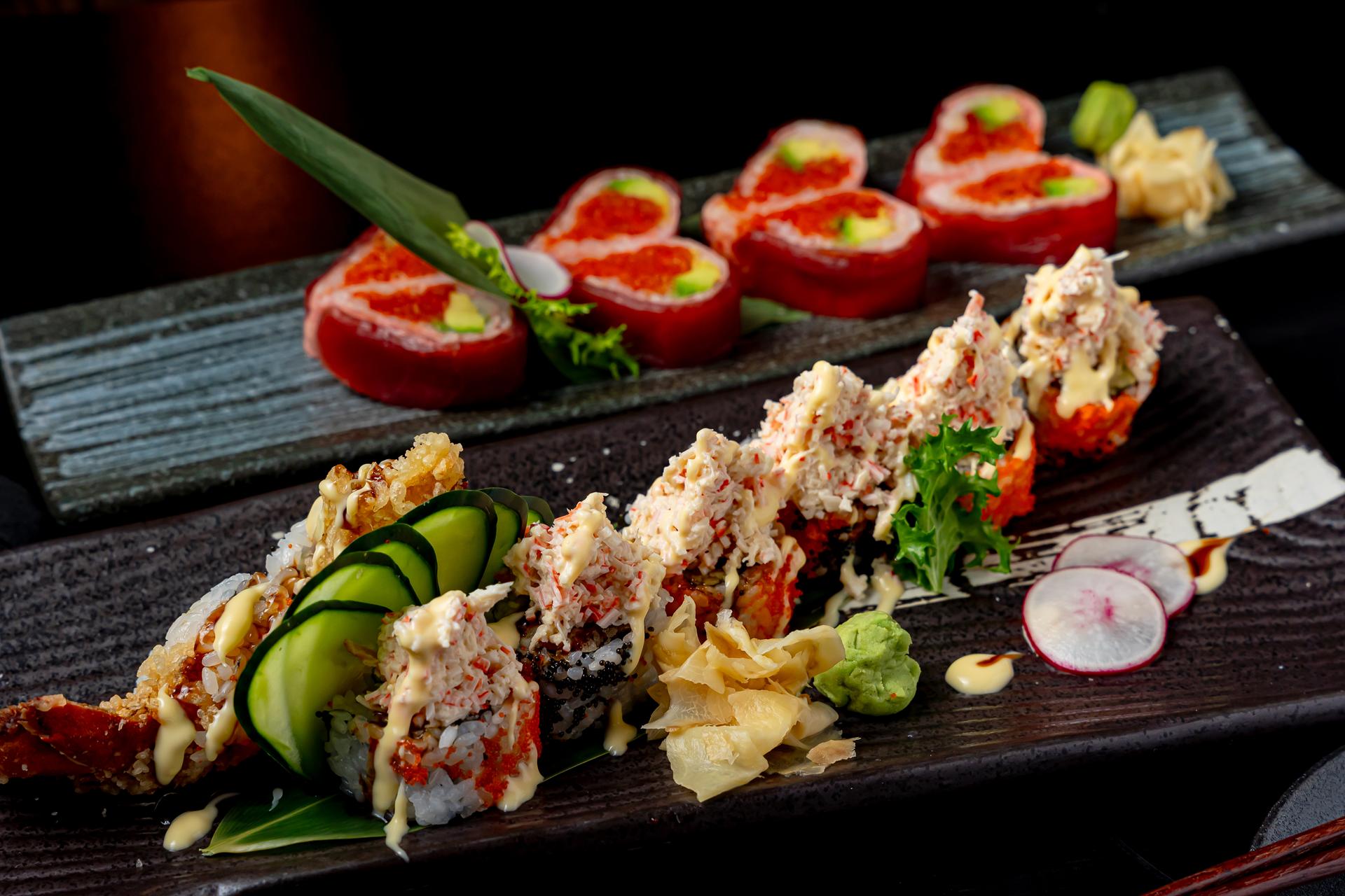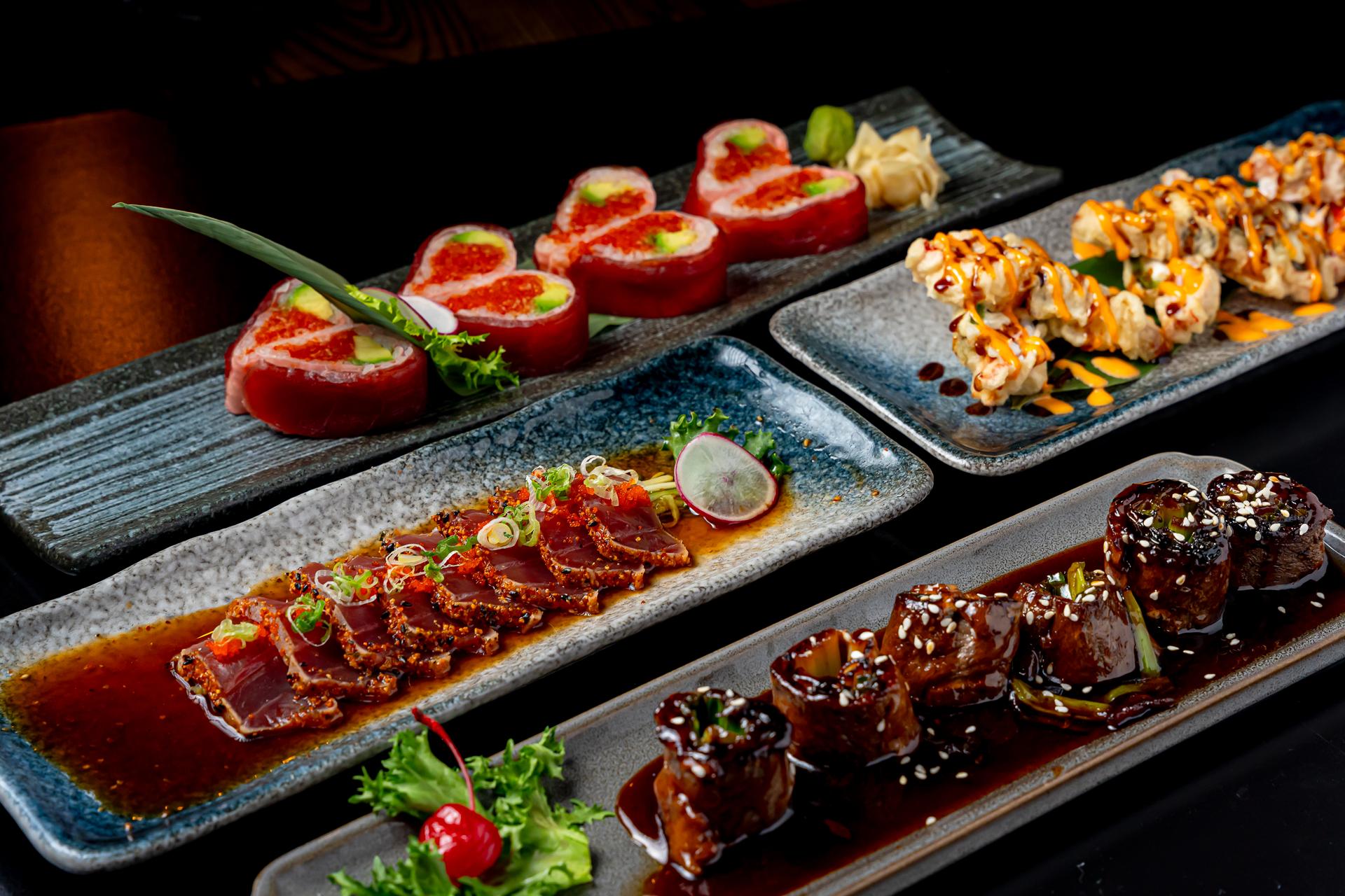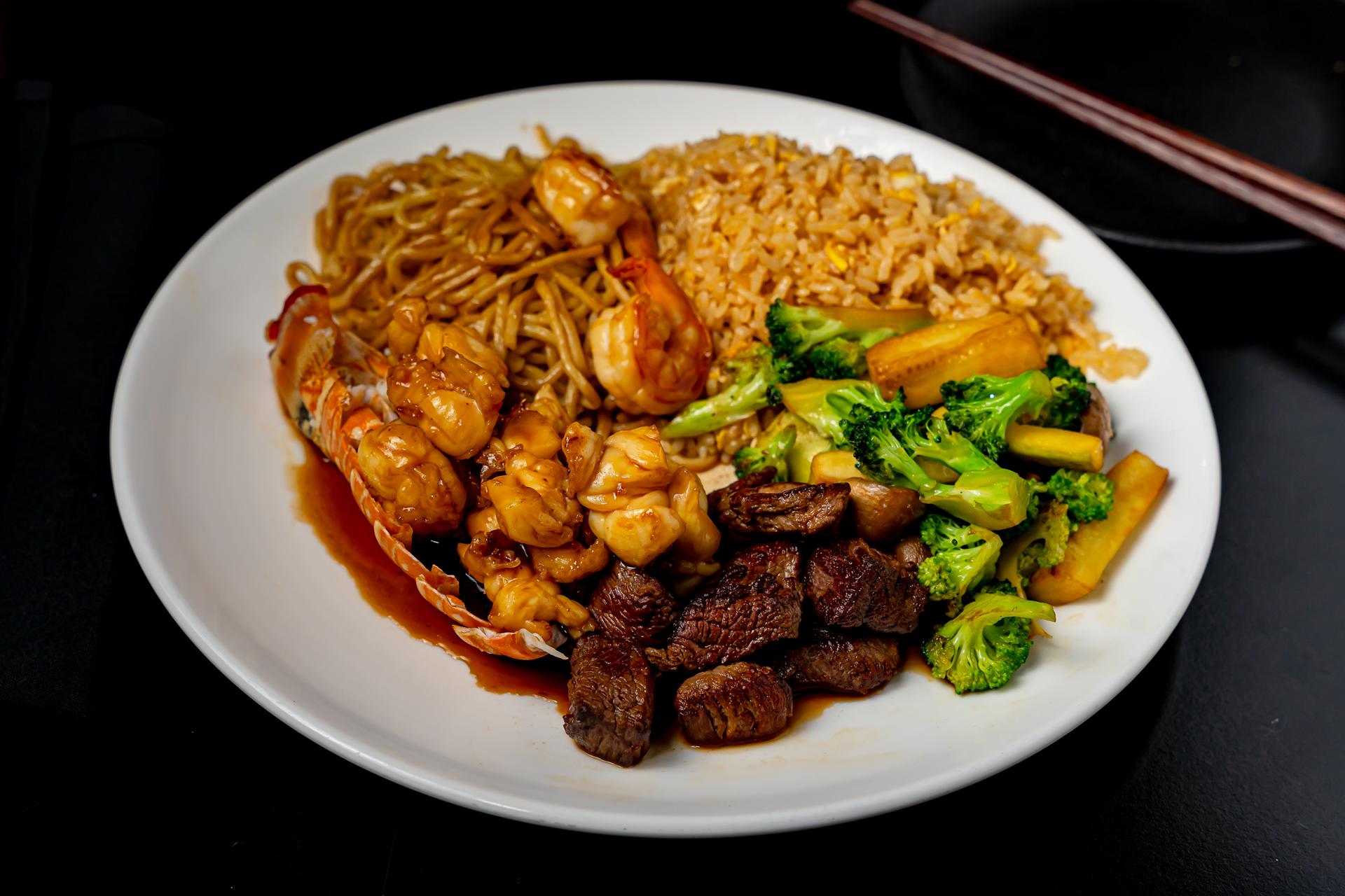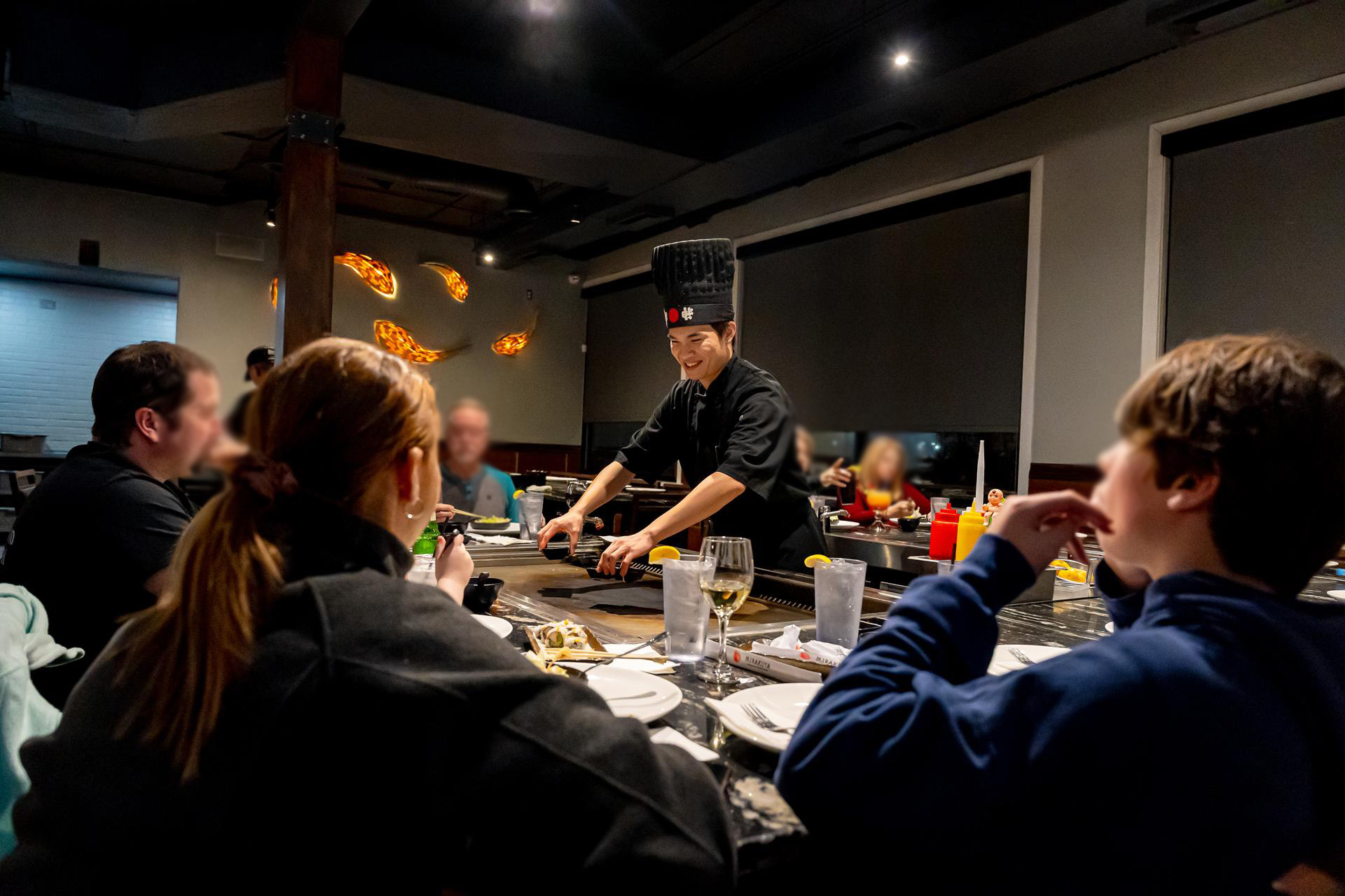 Asian-inspired menu that includes sushi, noodle dishes, hibachi specials & a full-service bar